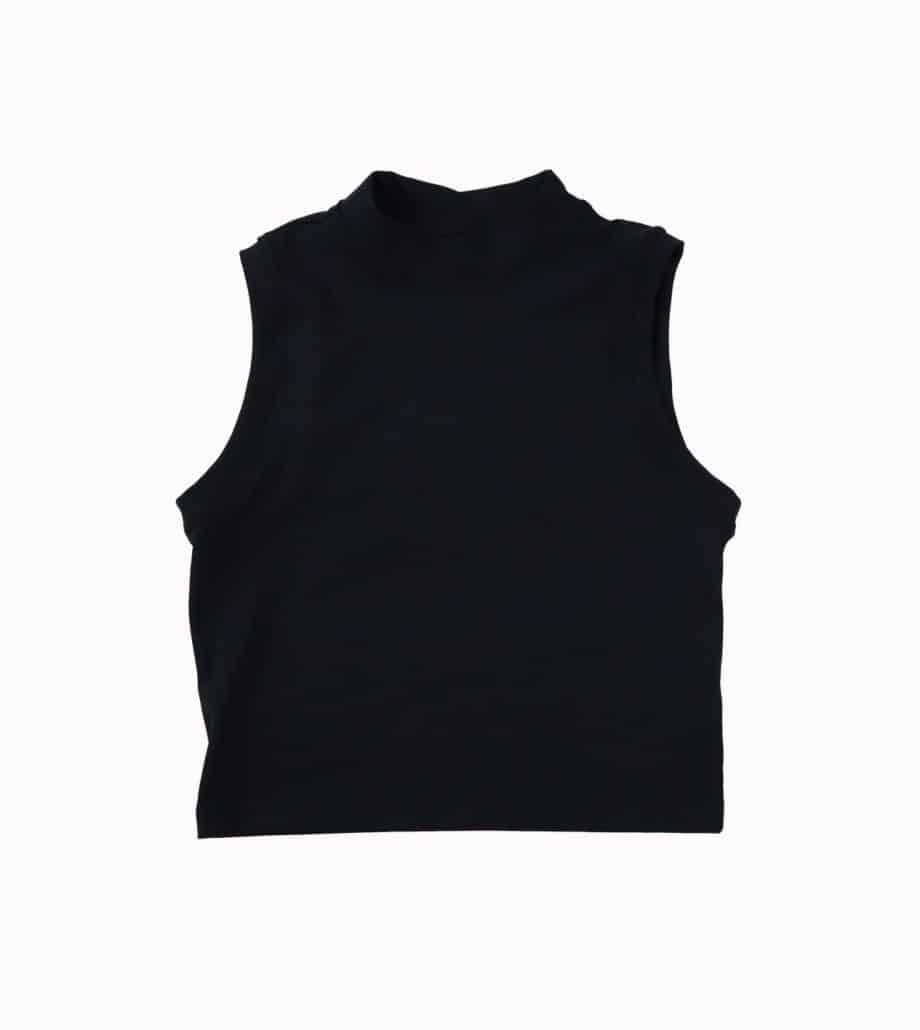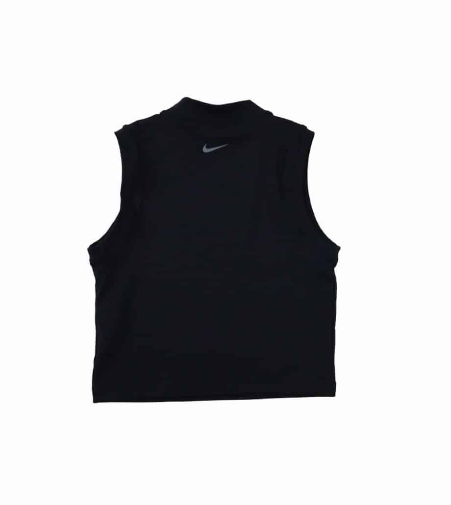 Mot. sportinė maikutė, juodos spalvos, Crop Top stiliaus, be rankovių, stati apykaklė, Nike spausdintas logo nugaroje.