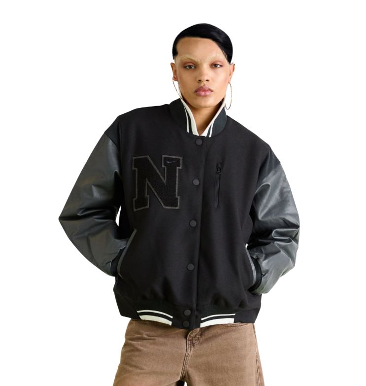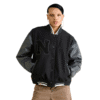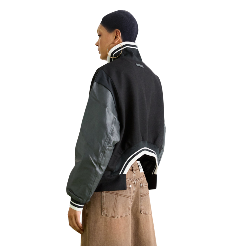Mot. bomber stiliaus striukė, juodos spalvos, ilgomis rankovėmis, šoninės kišenės, elastinė juosmens juosta, užsegimas spaudėmis.