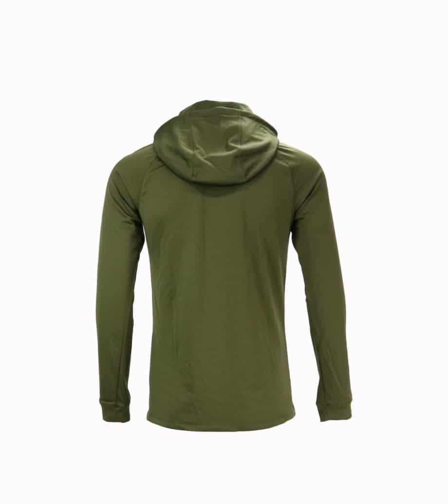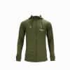 Vaik. džemperis, žalios spalvos, ilgomis rankovėmis, gobtuvas, užsegimas užtrauktuku, šoninės kišenės, stati apykaklė.