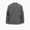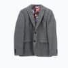 Vyr. švarkas, pilkos spalvos, užsegimas sagomis, atlenkiama apykaklė, raštuotas pamušalas, šoninės kišenės, elegantiškas tiesaus kirpimo.