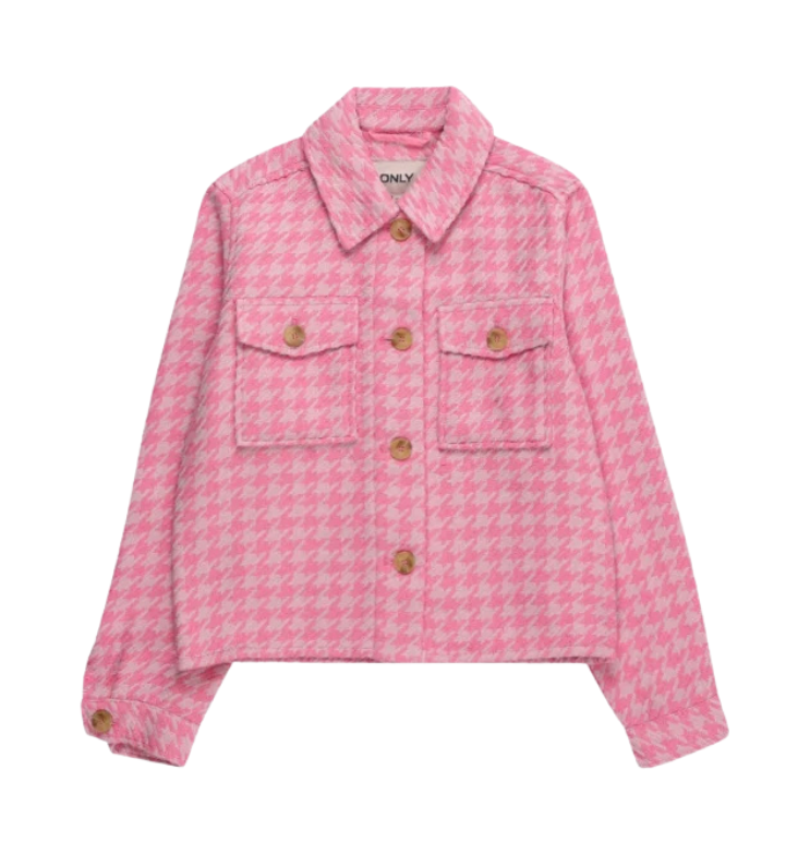Vaik. švarkas, rožinės spalvos, ilgomis rankovėmis, kento apukaklė, užsegimas per visą ilgį.