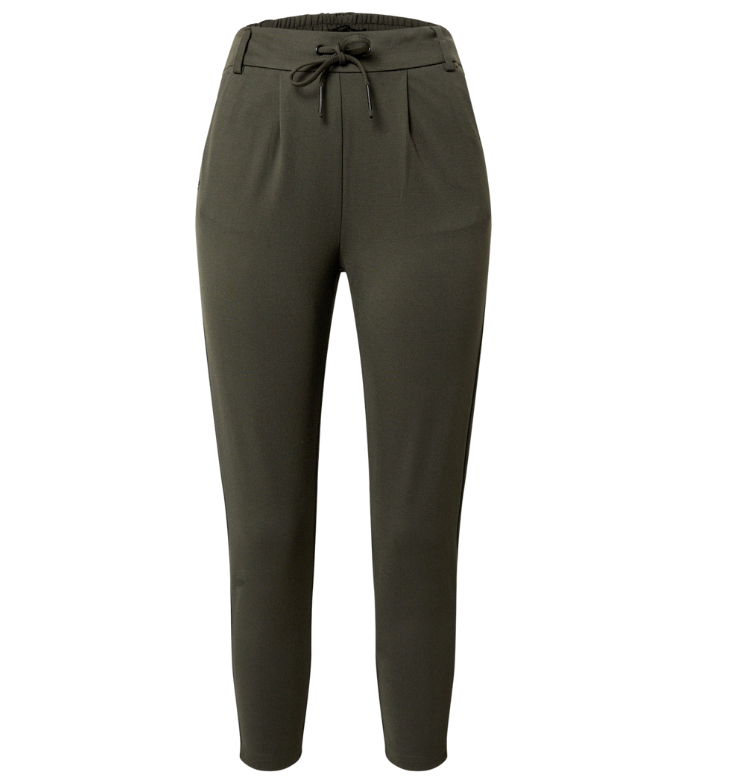 Mot. kelnės, chaki spalvos, elastinga juosmuo, raišteliai, šoninės kišenės, kilpa diržui.