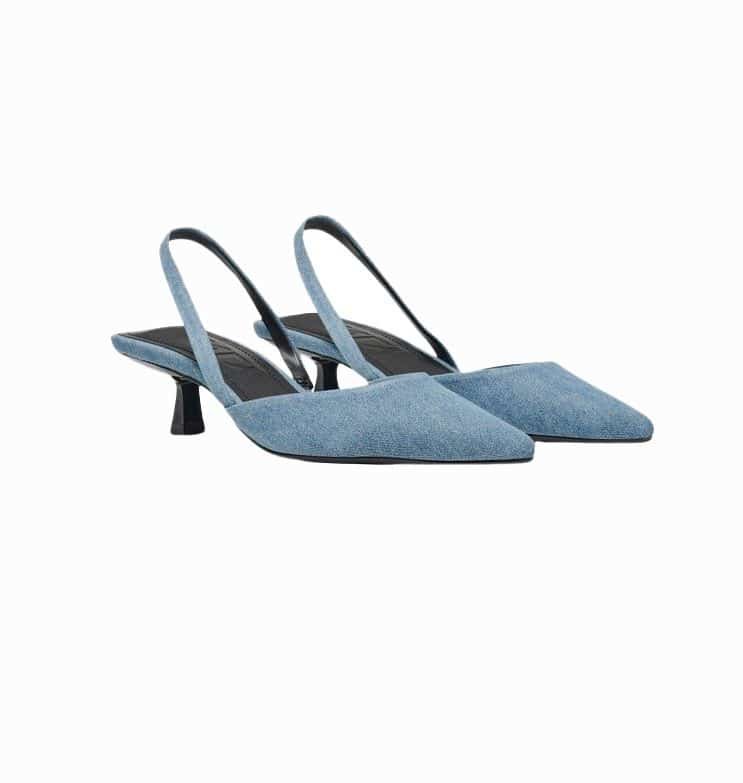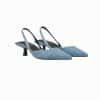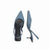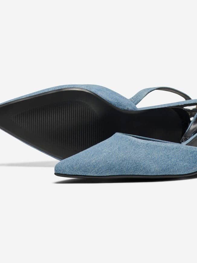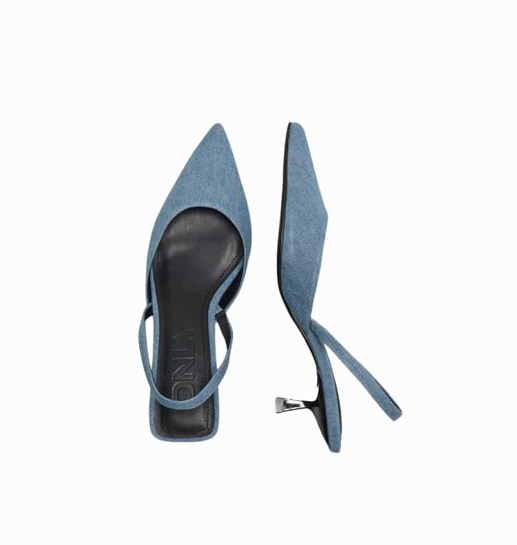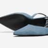 Mot. aukštakulniai, mėlynos spalvos, džinsinė medžiaga, smaili noselė, užsegimas dirželiu. Sezonas- Vasara.
