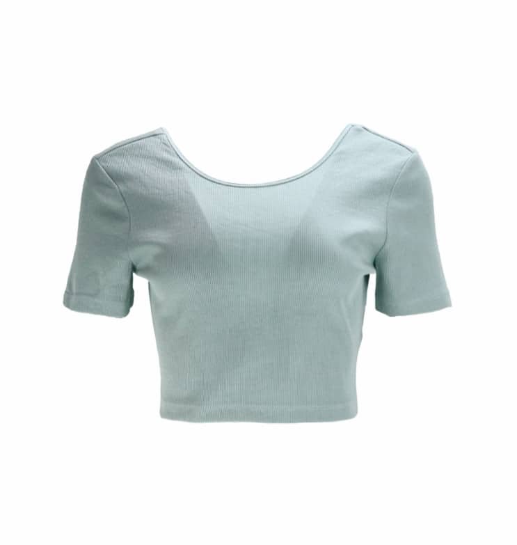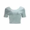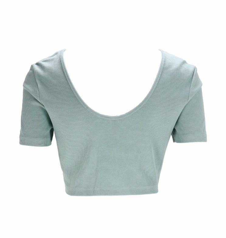 Mot. marškinėliai, švelnios melsvai pilkos spalvos, trumpomis rankovėmis, apvali kaklo iškirptė.