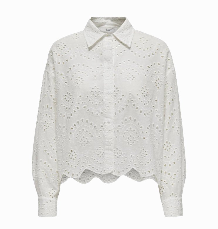 Mot. marškiniai, baltos spalvos, ilgomis rankovėmis, užsegimas per visą ilgį.