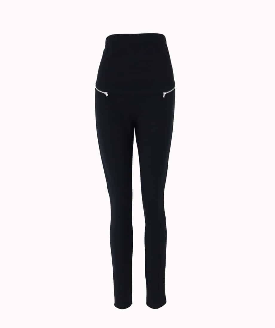 Mot. mamos tamprės, juodos spalvos, aukštas liemuo, priglundančios, kišenių imitacija.