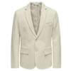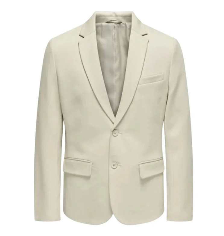 Vyr. švarkas, smėlio spalvos, ilgomis rankovėmis, V formos kaklo iškirptė, užsegimas sagomis, šoninės kišenės.