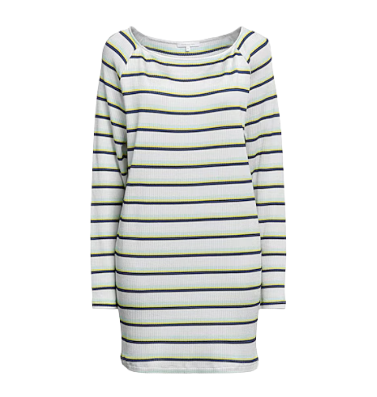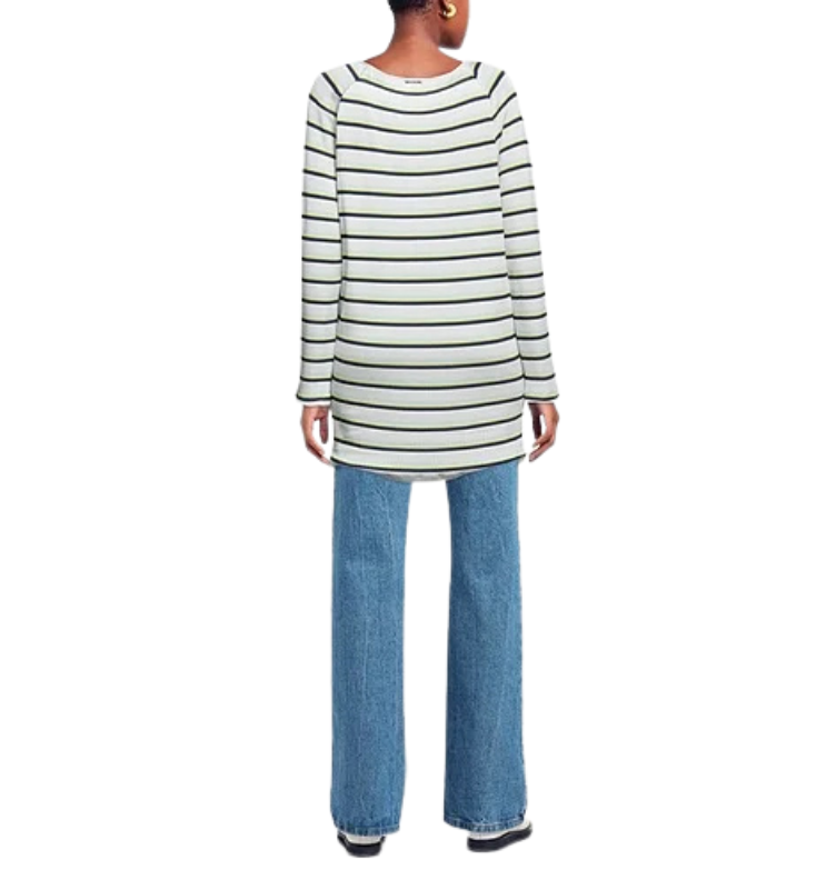 Mot. megztinis, tiesaus kirpimo, dryžuoto rašto, ilgintas.