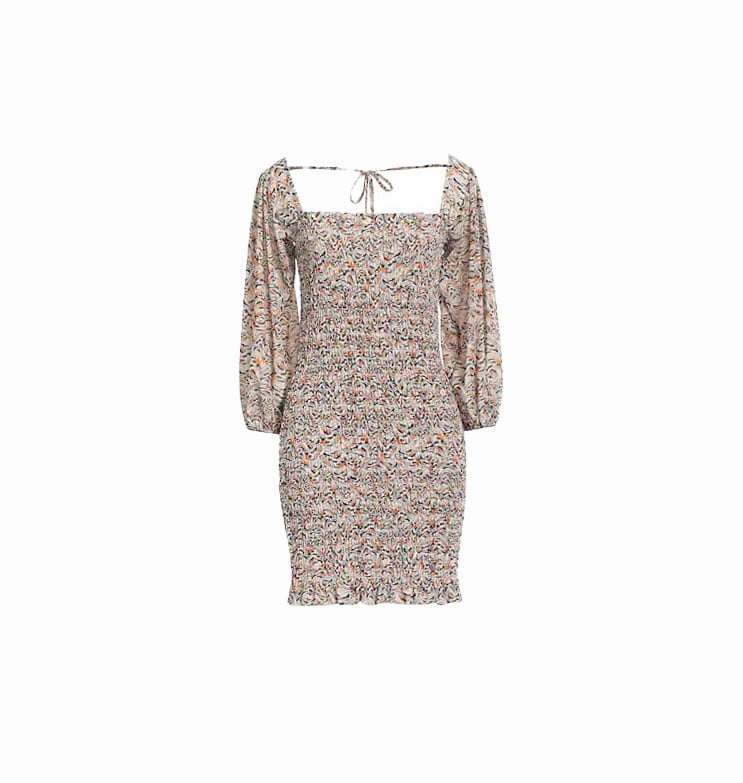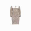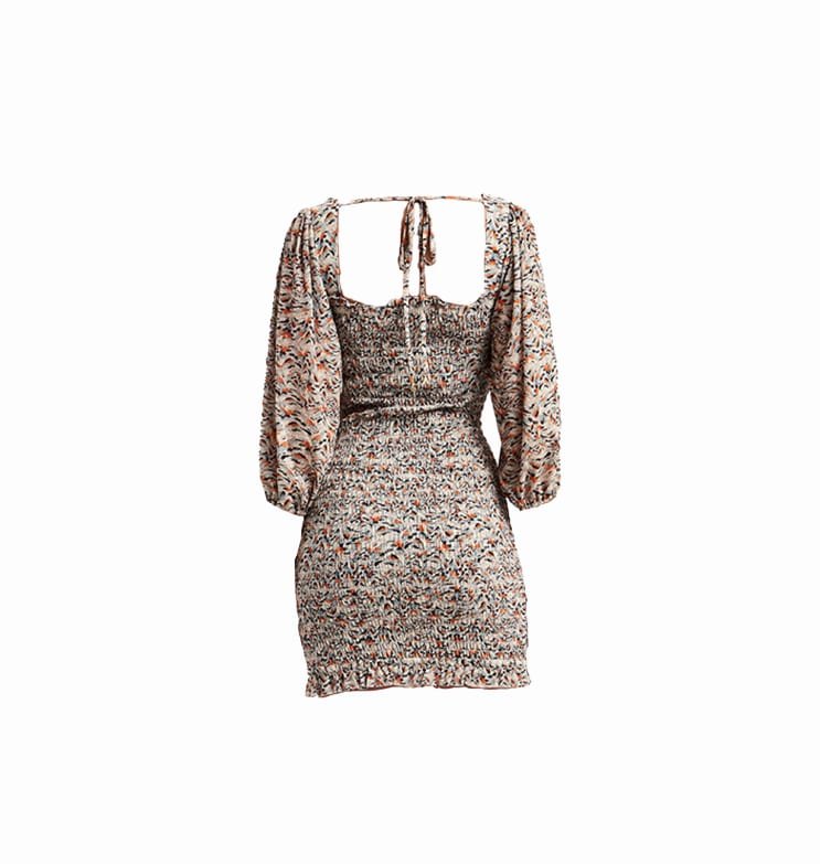 Mot. suknelė, prigludusi, kvadratinė iškirptė, ilgos rankovės, pūstos rankovės, be pamušalo, elastinga, užsegimas surišimas raišteliais.