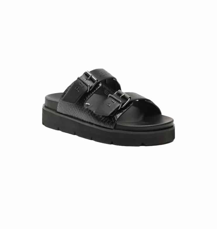 Mot. šlepetės, juodos spalvos, batų nosis atvira, plokščiapadis kulnas, kasdieniniai, vasaros sezonui.