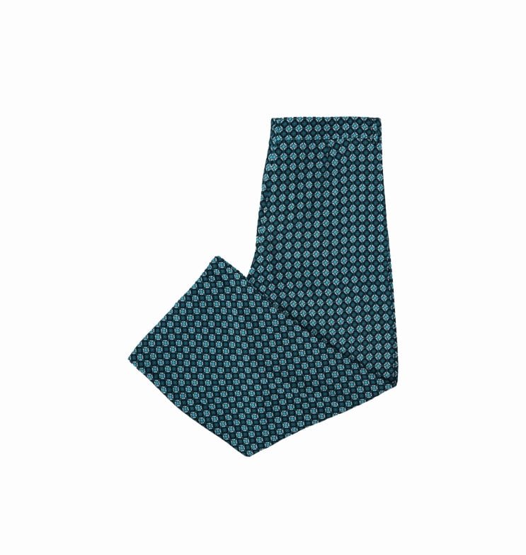 Mot. plačios kelnės, mėlynos spalvos, tiesaus kirpimo, smulkus raštas, lengva medžiaga, užsegimas užtrauktuku ir sagute,šoninės kišenės.