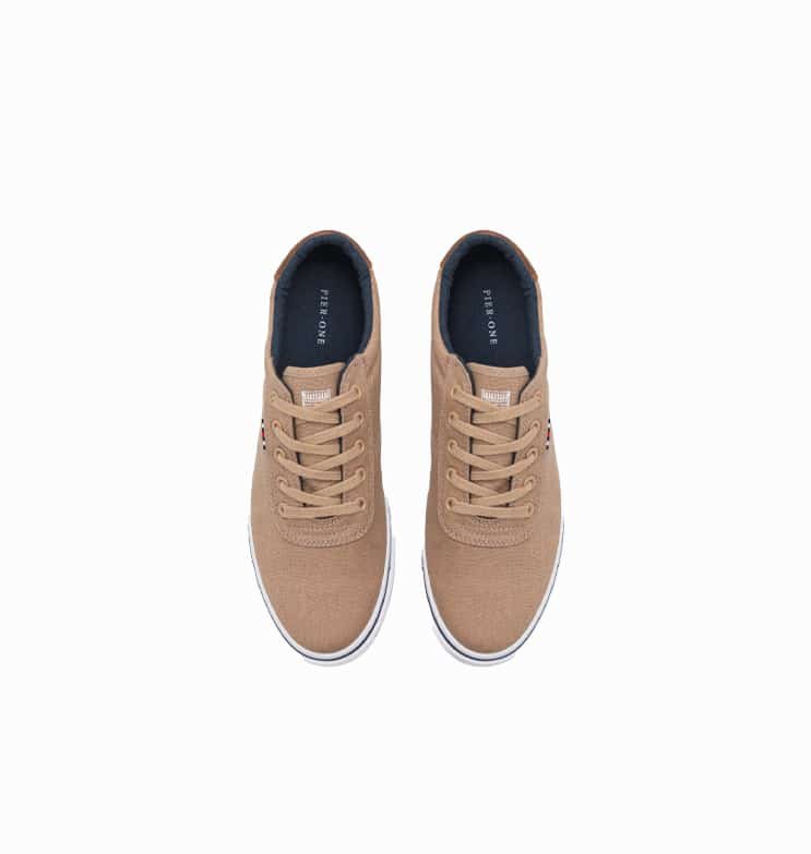 Unisex sportbačiai, rudos spalvos, apvali batų nosis, suvarstomi, paprastas spalvos dizainas, medžiaginiai batraiščiai, plokščias padas.