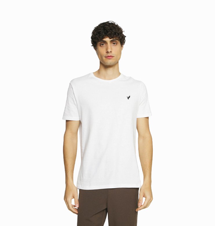 Vyr. marškinėliai, baltos spalvos, trumpomis rankovėmis, apvali kaklo iškirptė.