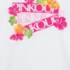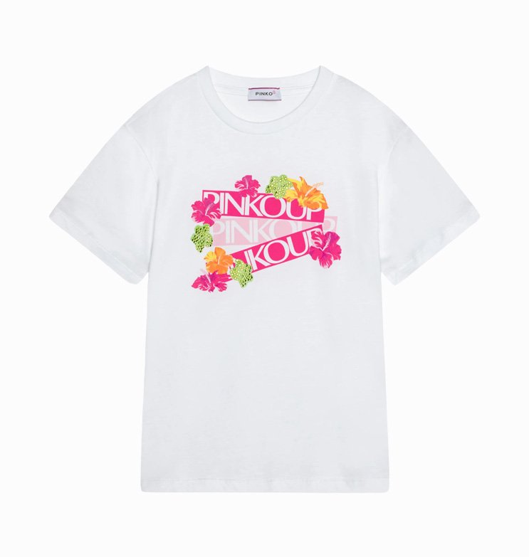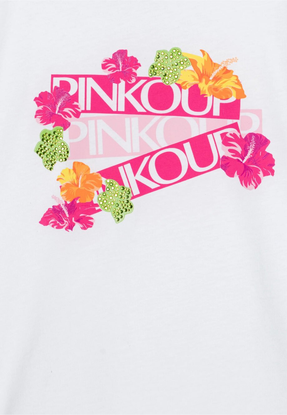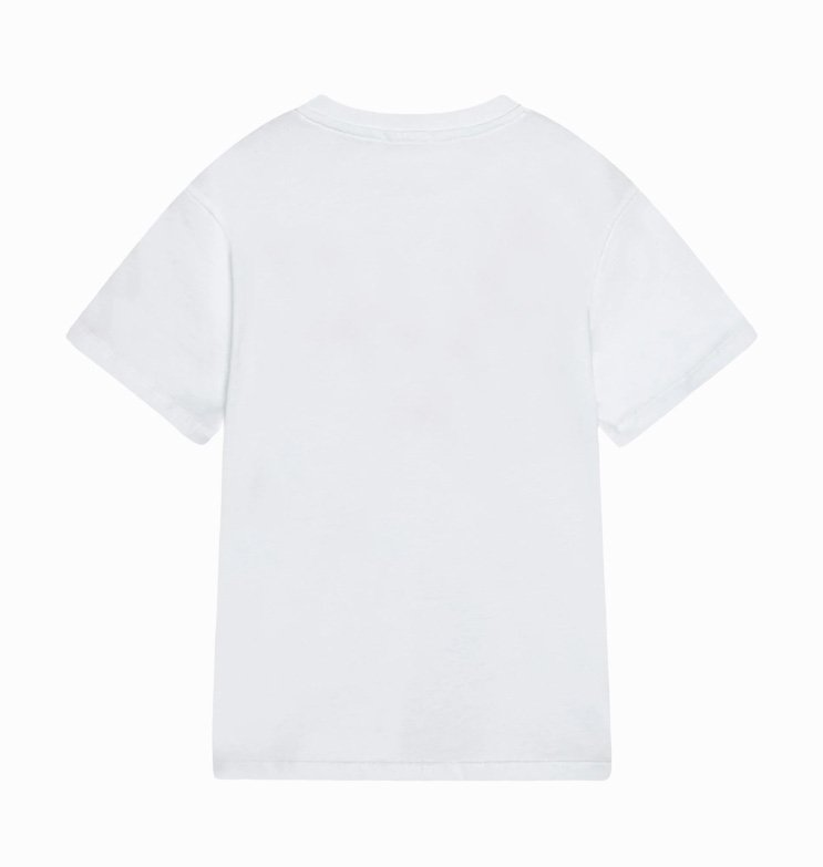 Vaik. marškinėliai, baltos spalvos, trumpomis rankovėmis, apvali kaklo iškirptė, raštas spaudinys.