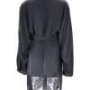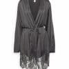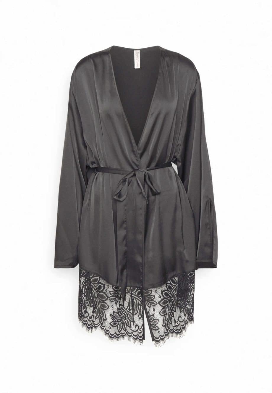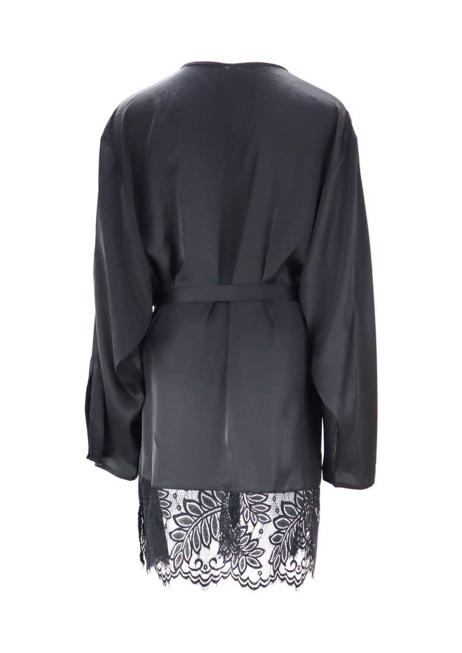Mot. chalatas, juodos spalvos, 3/4 rankovės, kimono stiliaus, dirželis, kutai.