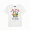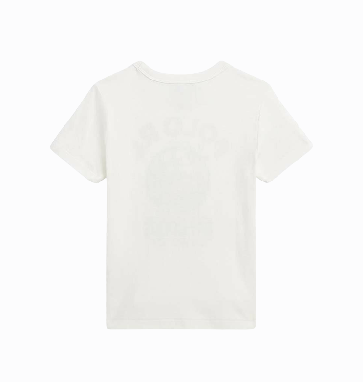 Vaik. marškinėliai, baltos spalvos, trumpomis rankovėmis, apvali kaklo iškirptė, logotipo detalė, spausdintas raštas.