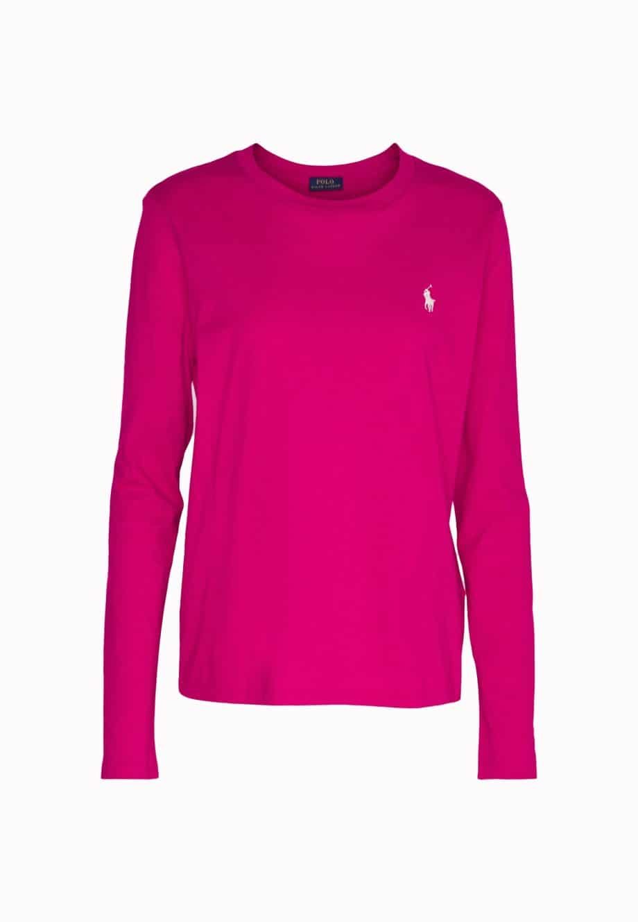 Mot. marškinėliai ilgomis rankovėmis, rožinės spalvos, apvalus kaklas, tiesaus kirpimo, įsiutas logotipas.