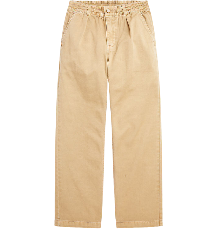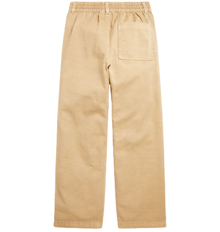 Vaik. kelnės, rudos spalvos, elastingas juosmuo, užsegimas sagute ir užtrauktuku, šoninės kišenės, diržo kilpos.