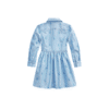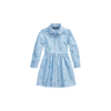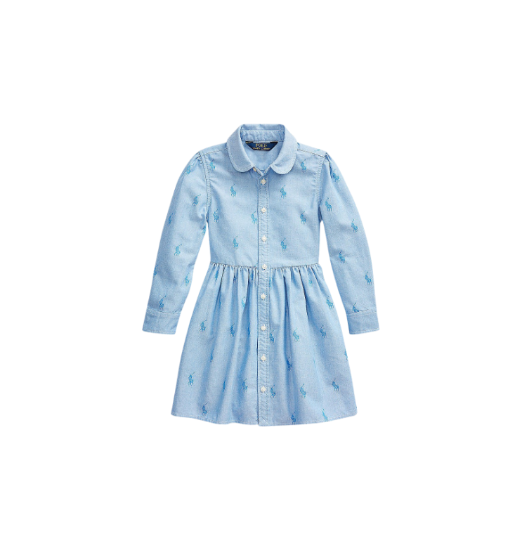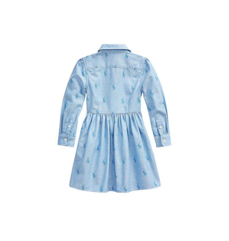 Vaik. suknelė, žydros spalvos, ilgomis rankovėmis, užsegimas per visą ilgį.