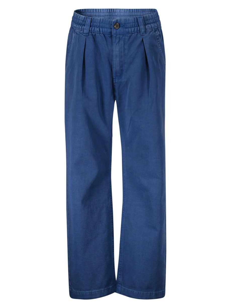 Vaik. kelnės, mėlynos spalvos, tiesaus kirpimoelastingas juosmuo, užsegimas sagute ir užtrauktuku, šoninės kišenės.