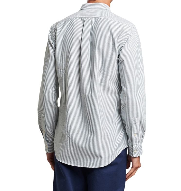 Vyr. dryžuoti marškiniai ilgomis rankovėmis, priekyje išsiuvinėtas logotipas, užsagstomi sagomis
