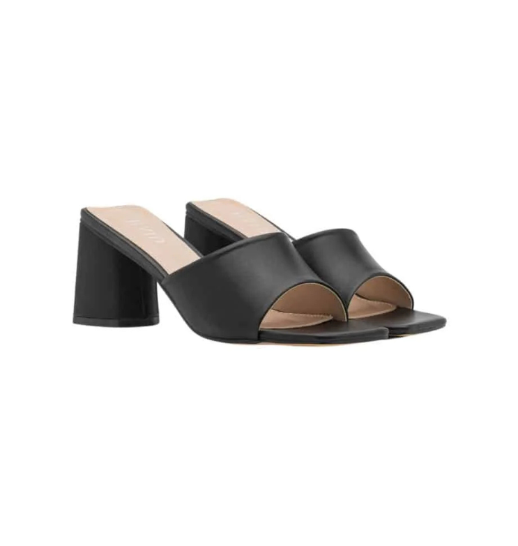 Mot. aukštakulniai, juodos spalvos, atvira kvadratinė batų nosis, blokinis kulnas, be užsegimo, įspiriamos, elegantiškos, vasariškos.