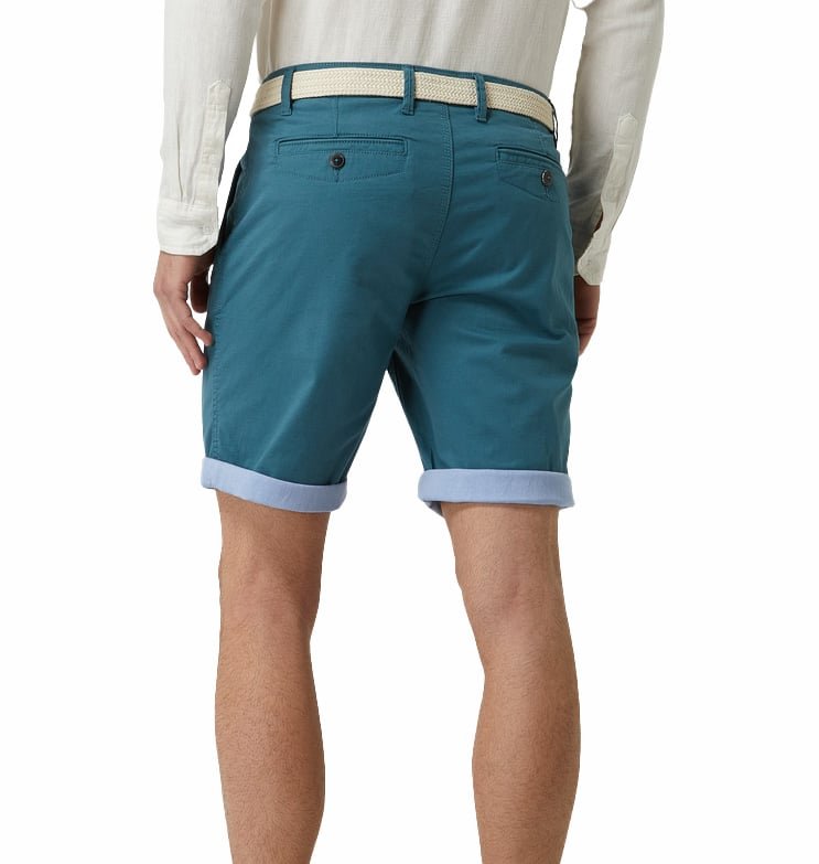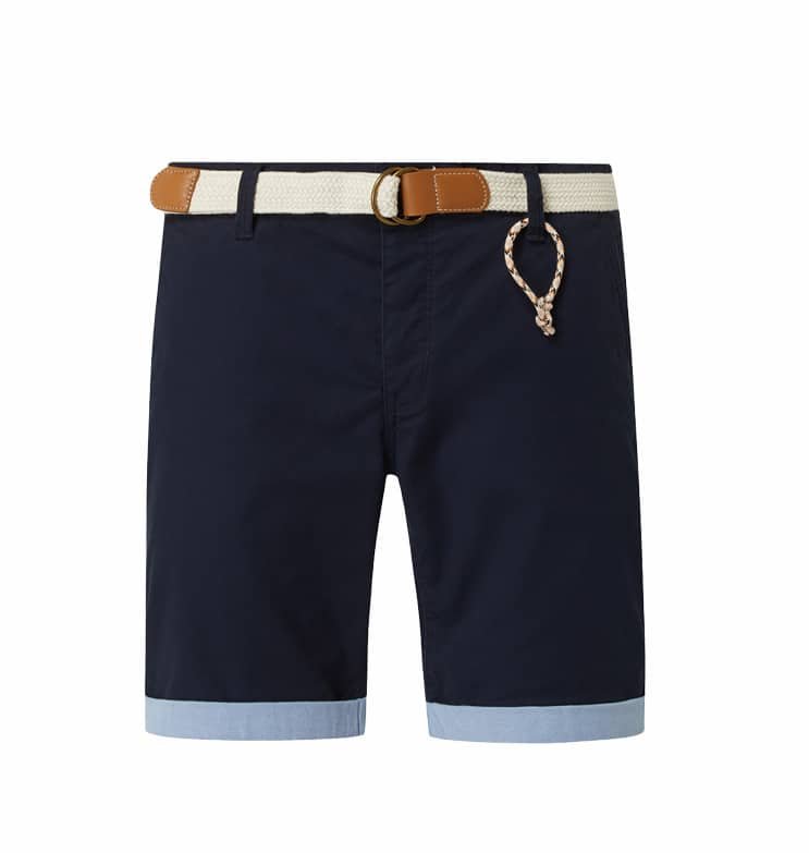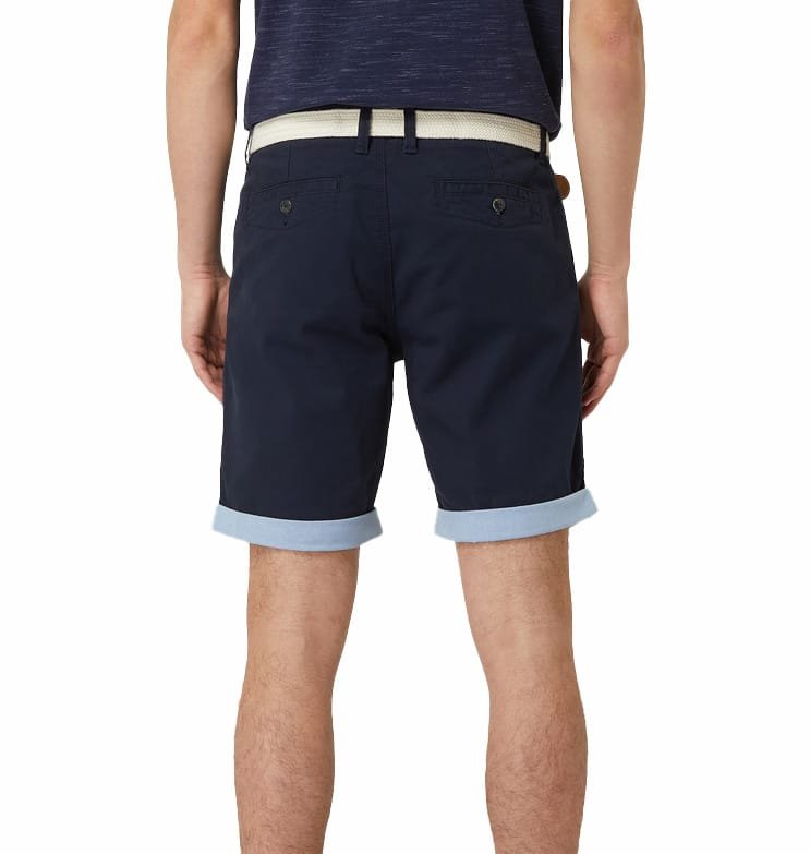 Vyr. šortai, tamsiai mėlynos spalvos, šoninės kišenės, užpakalinės kišenės.