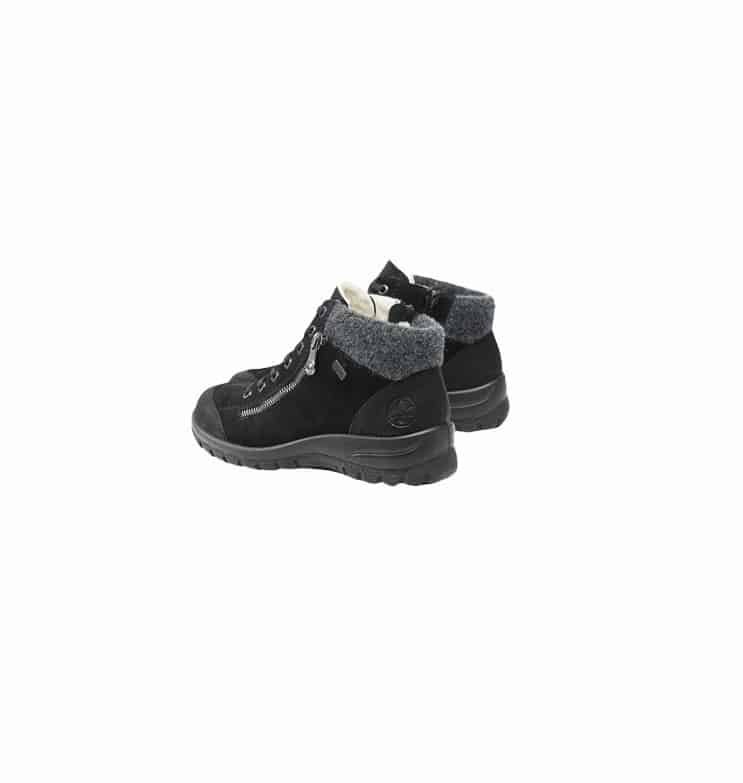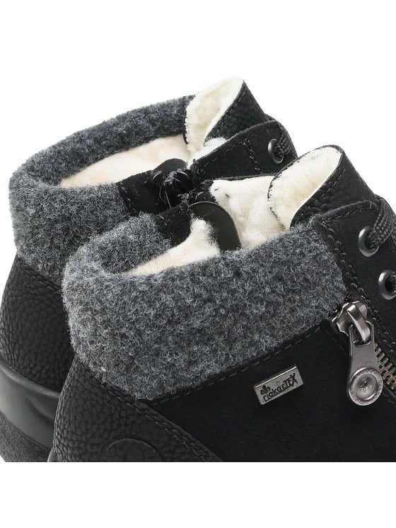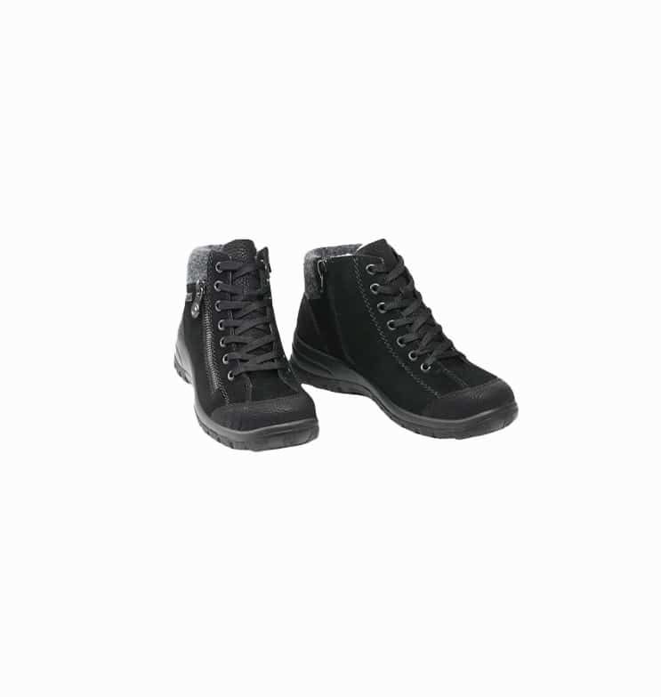 Mot. aulinukai, juodos spalvos, užsegimas užtrauktuku, suvarstomi, apvali batų nosis, plokščias kulnas, kasdieniniai, medžiaginiai batraiščiai, su pašiltinimu. Sezonas- Žiema.