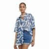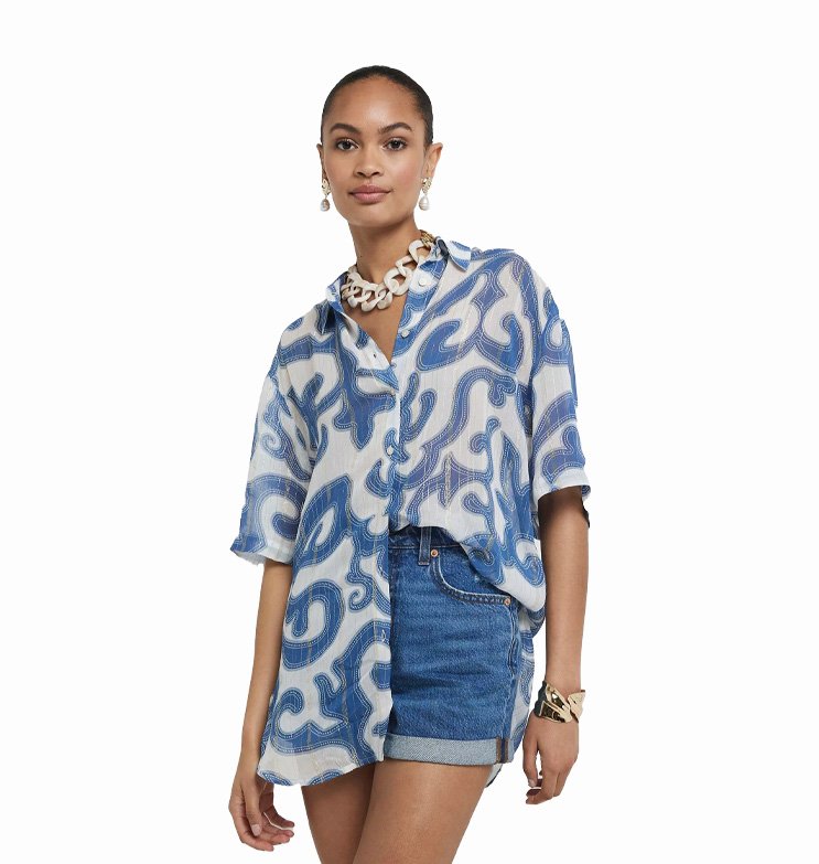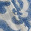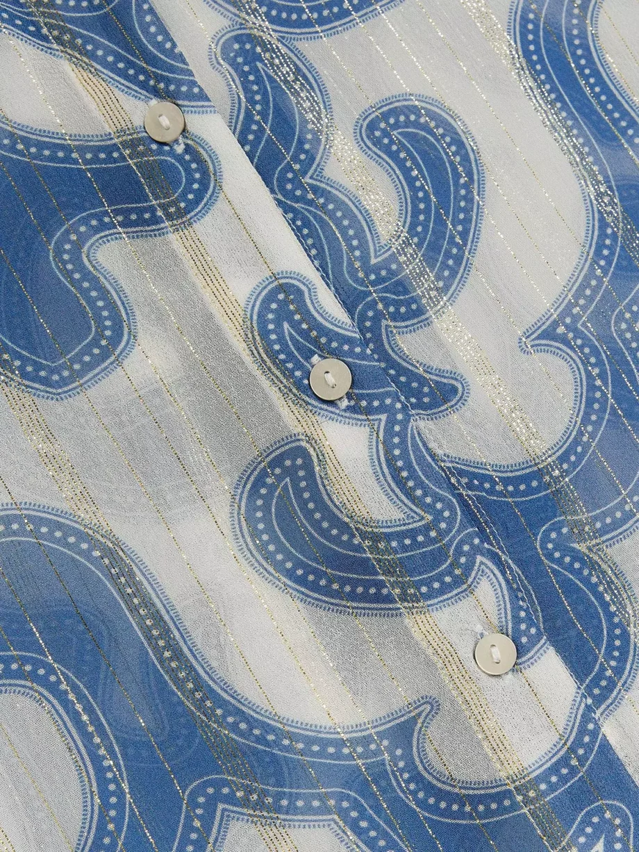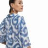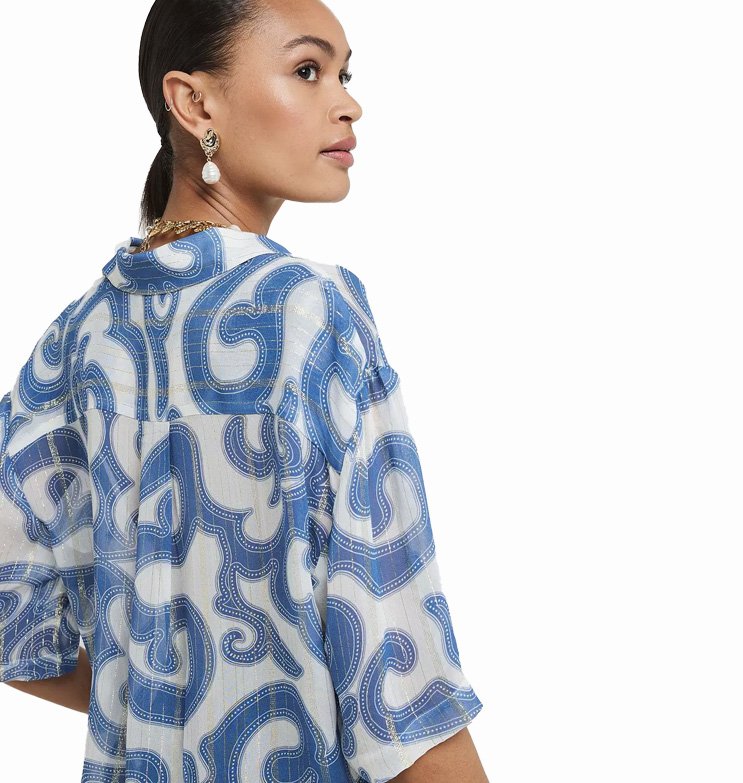 Mot. palaidinė, mėlynos spalvos, trumpomis rankovėmis, dryžuotas raštas, užsegimas per visą ilgį.