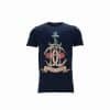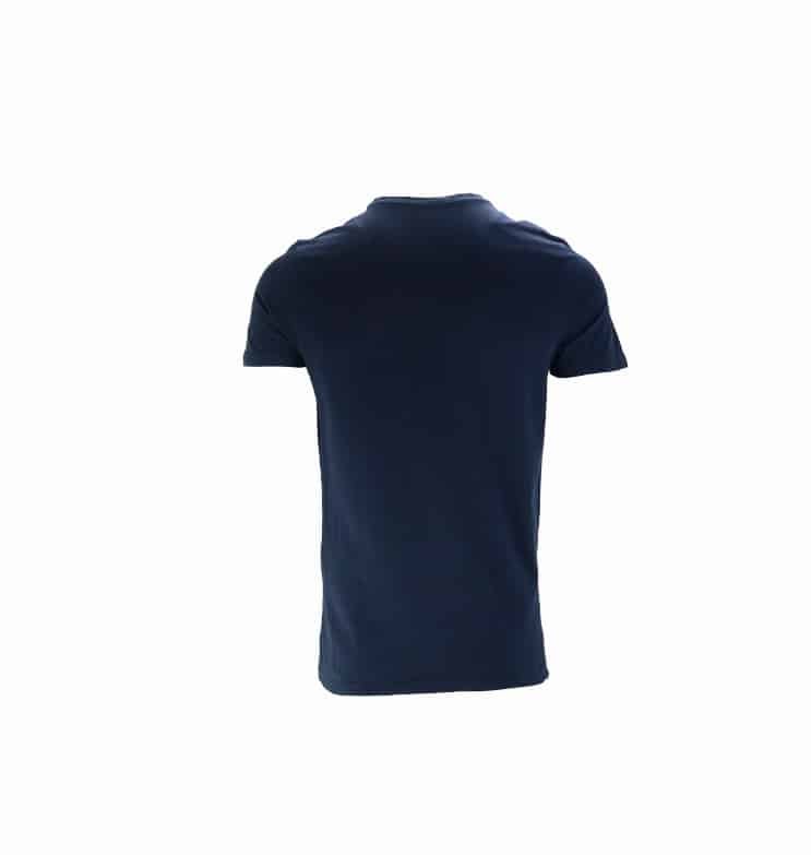 Vyr. marškinėliai, tamsiai mėlynos spalvos, apvali iškirptė, išskirtiniu dizainu priekyje.