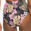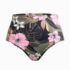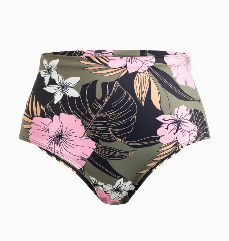 Mot. maudymosi kelnaitės, chaki spalvos, aukštas liemuo, gėlių raštas.