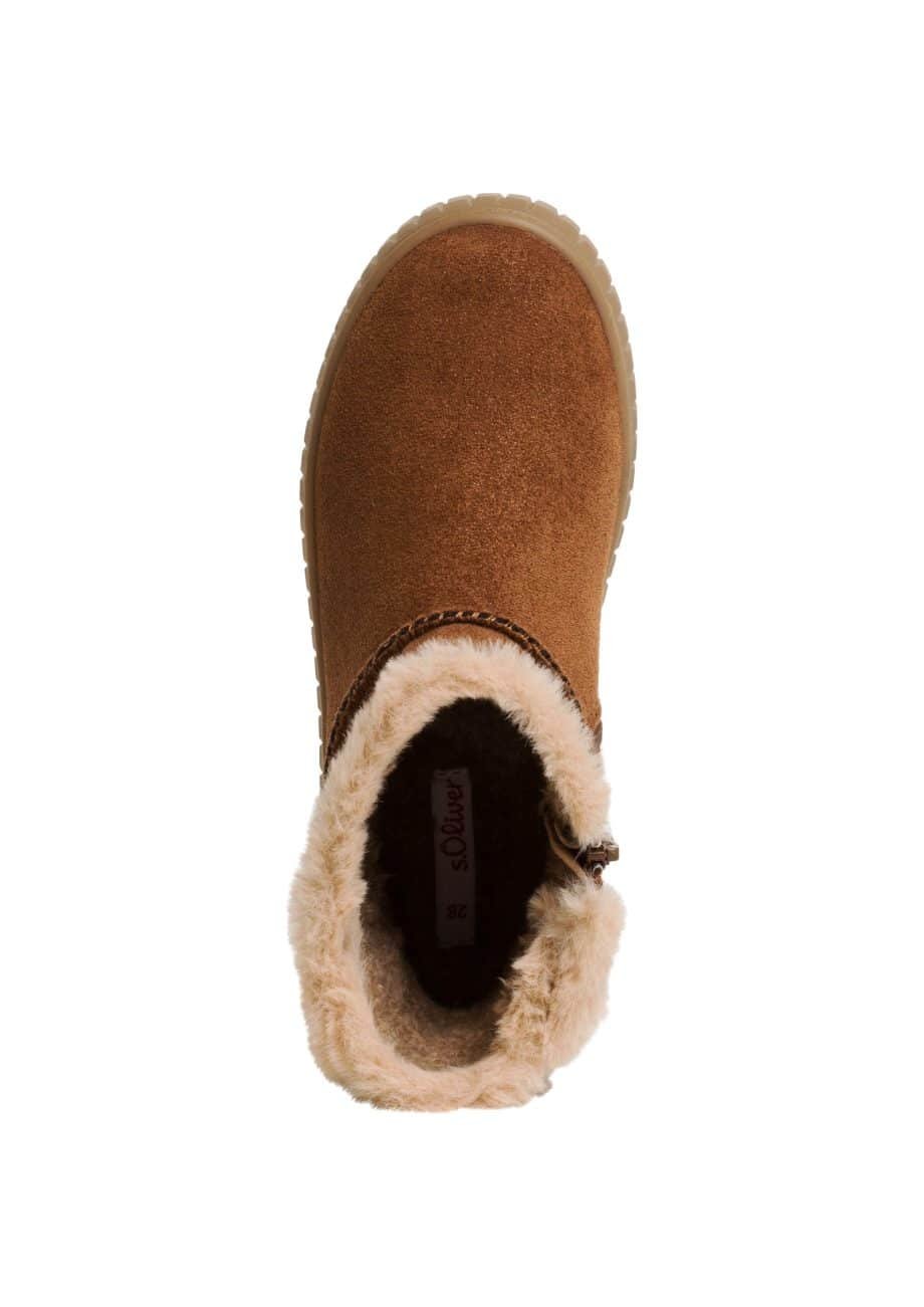 Vaik. žieminiai batai, rudos spalvos, apvali noselė, plokščias padas, užsegimas užtrauktuku, vinespalvio rašto, su pašiltinimu, aulas iki kulkšnies.