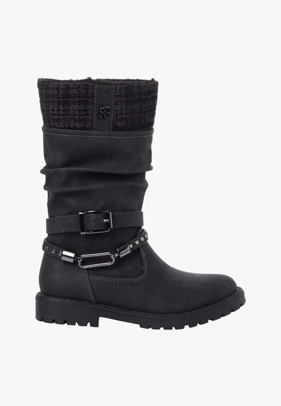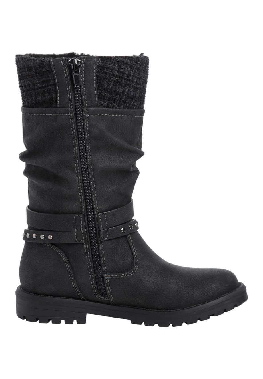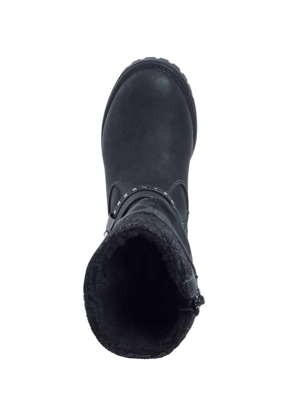 Mot. aulinukai, juodos spalvos, suapvalinta noselė, apdirbtas padas, kniedės, lankstus padas, užtrauktukas, šiltas pamušalas.