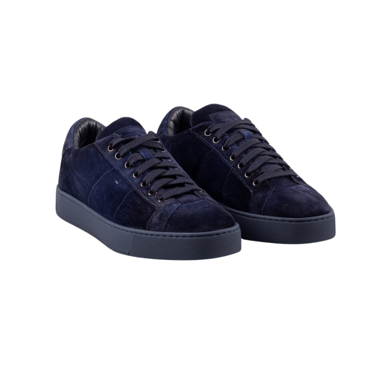 Vyr. laisvalaikio batai, tamsiai mėlynos spalvos, apvali batų nosis, suvarstomi medžiaginiais batraiščiais.