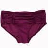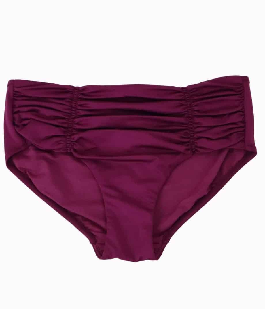 Mot. maudymosi kelnaitės, violetinės spalvos, elastingas juosmuo, aukštesnis juosmuo, rauktas dizainas.