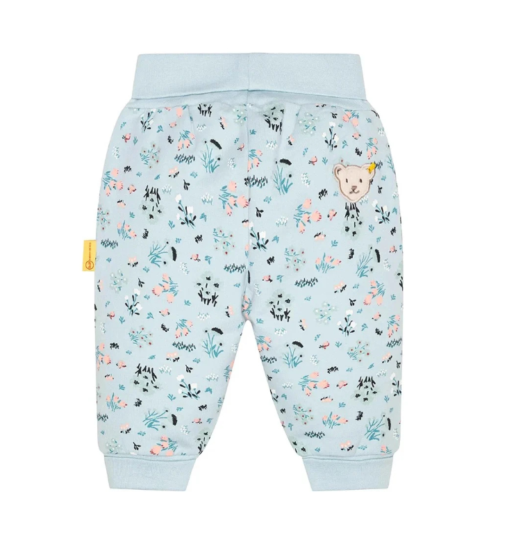 Vaik. kelnės, žydros spalvos, elastingas juosmuo, spausdintas raštas.