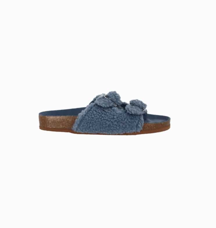 Mot. šlepetės, žydros spalvos, apvali batų nosis, be užsegimo, plokščias padas, vienspalvės.
