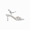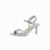 Mot. aukštakulniai bateliai, sidabrinės spalvos, apvali batų nosis, smailėjantis kulnas, užsegimas sagtimi.