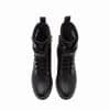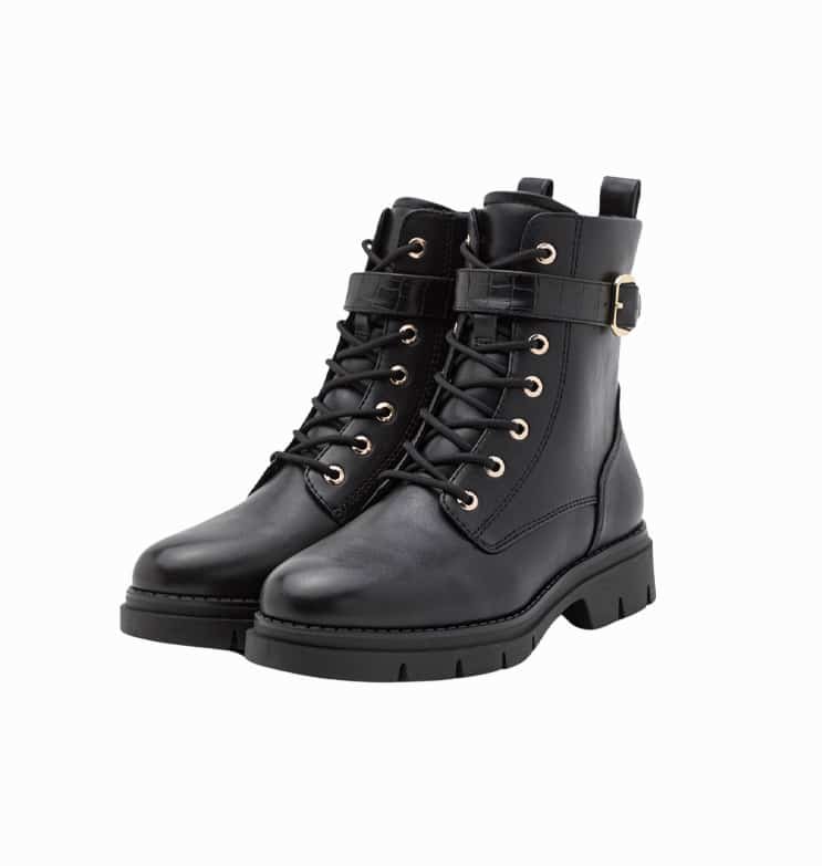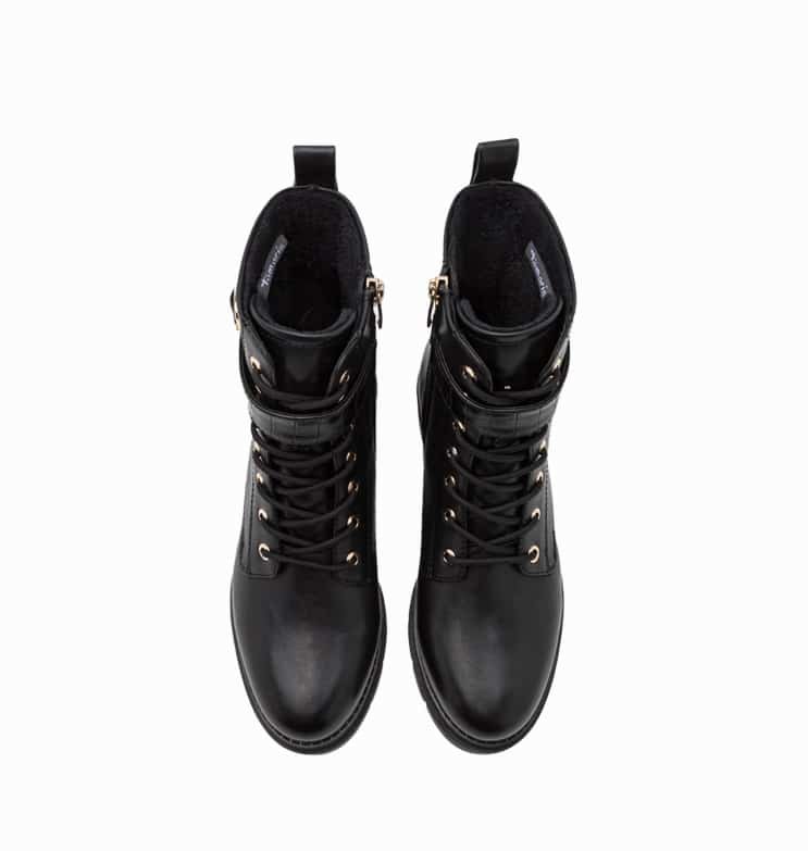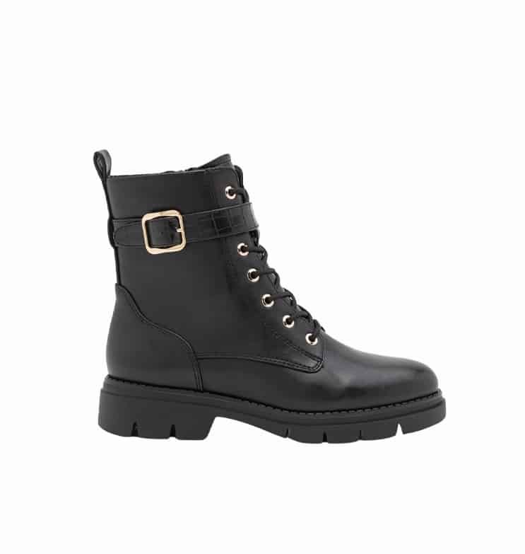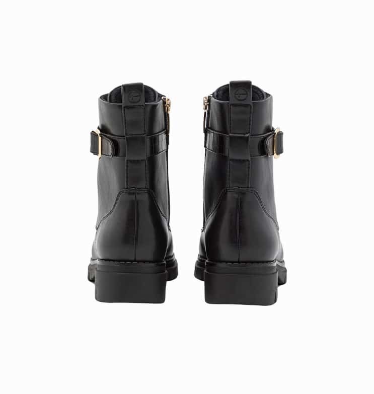 Mot. aulinukai, juodos spalvos, apvali noselė, blokinis kulnas, užsegimas užtrauktuku, vienspalvio rašto, auksinės spalvos sagtis, su pašiltinimu. Sezonas- Ruduo/ Pavasaris.