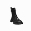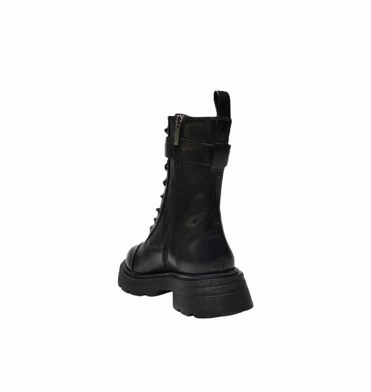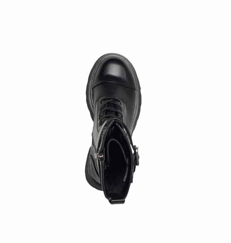 Mot. aulinukai, juodos spalvos, suvarstomi, užsegimas užtrauktuku, storas padas, metalinės detalės vidutinio ilgio.