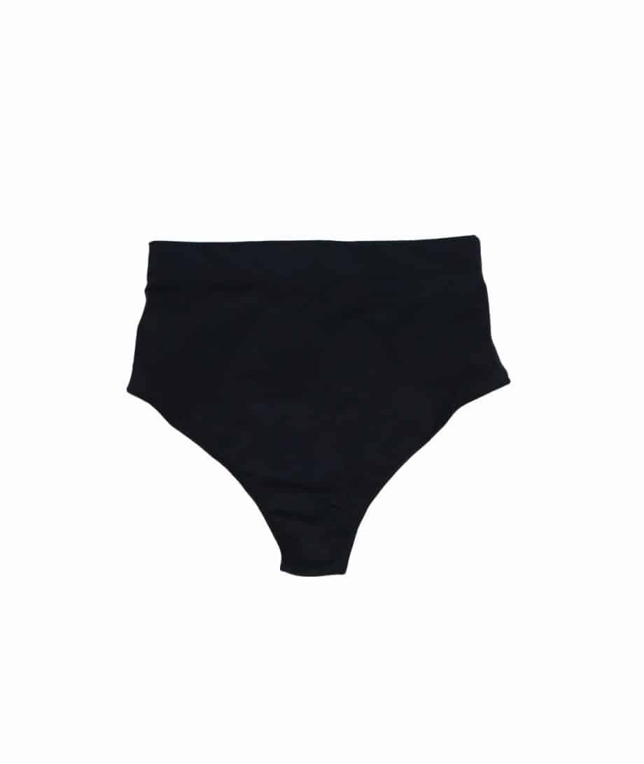 Mot. Braziliškos kelnaitės, juodos spalvos, aukštu juosmeniu, lengvai formuojančios, prigludusios, elastingas juosmuo. Mažintas dydis.