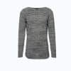 Vyr. megztinis pilkos spalvos, dryžuoto rašto, ilgomis rankovėmis, įgulos kaklas, briaunuoti rankogaliai.