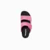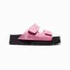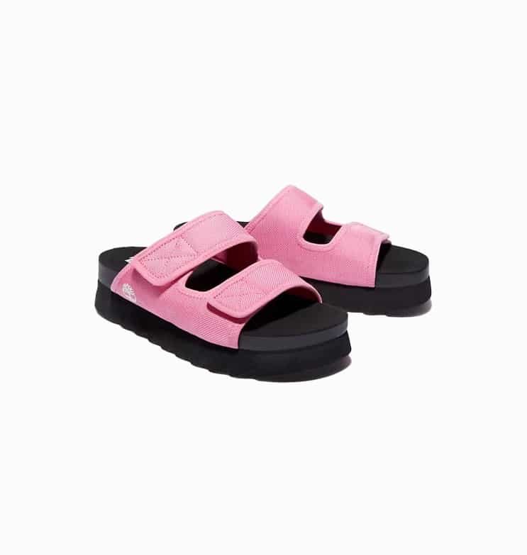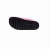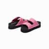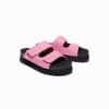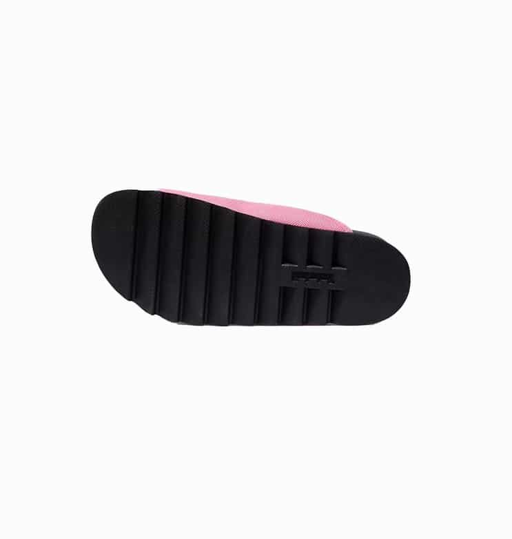 Mot. šlepetės, rožinės/ juodos spalvos, apvali batų nosis, su platforma, užsegimas lipukais.