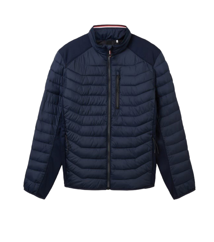 Vyr. striukė, tamsiai mėlynos spalvos, ilgomis rankovėmis, dygsniuota, raglano rankovės, neatlenkiama apykaklė, šoninės kišenės su užtrauktukais, užsegimas užtrauktuku.