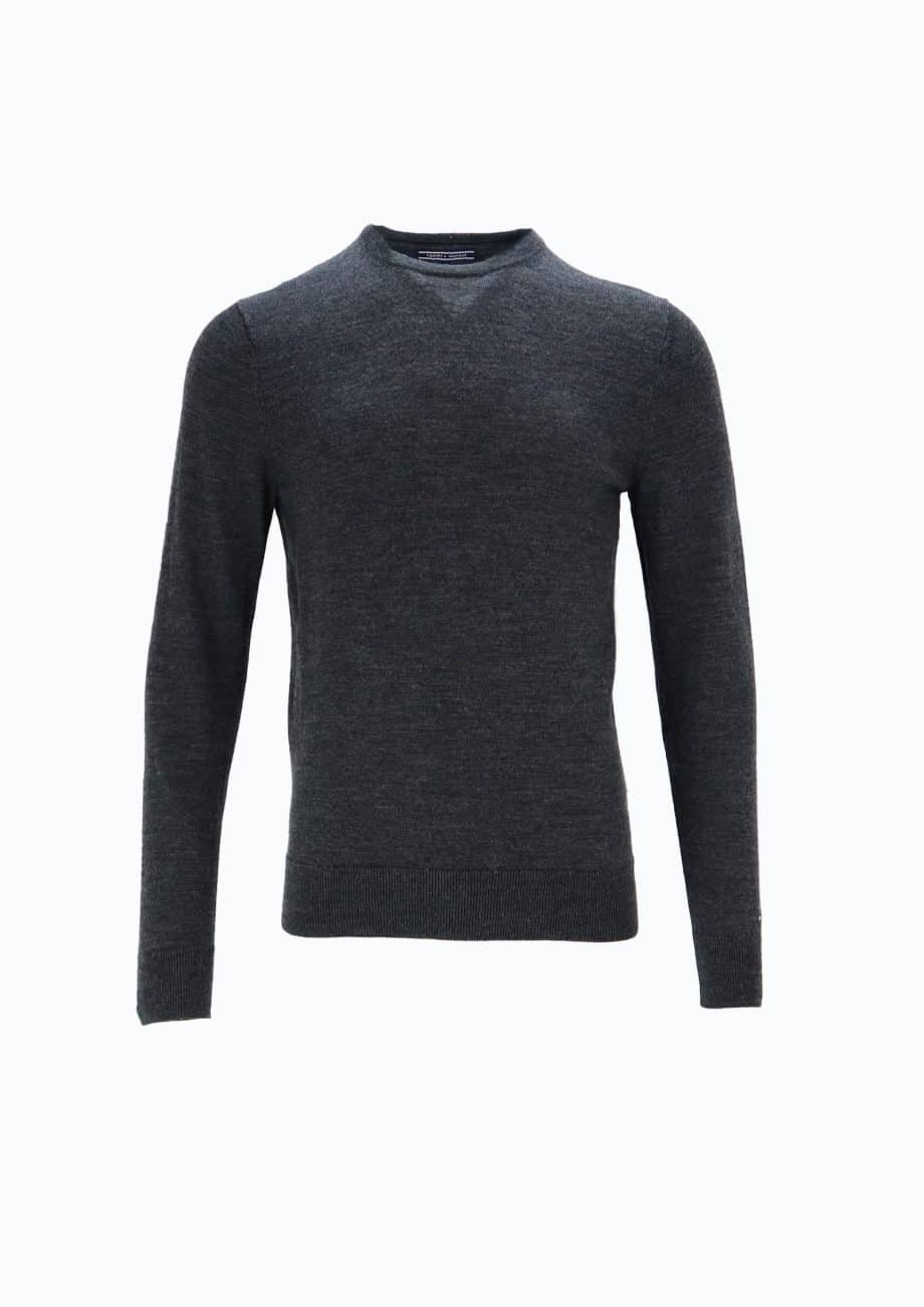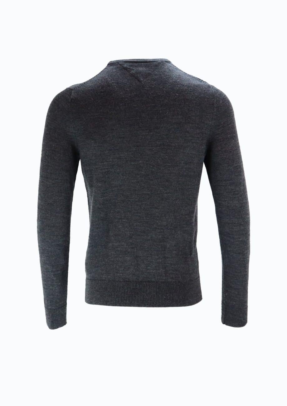 Vyr. megztinis, pilkos spalvos, ilgomis rankovėmis, tiesaus kirpimo, elastingas juosmuo, apvali iškiprtė, logotipo detalė.