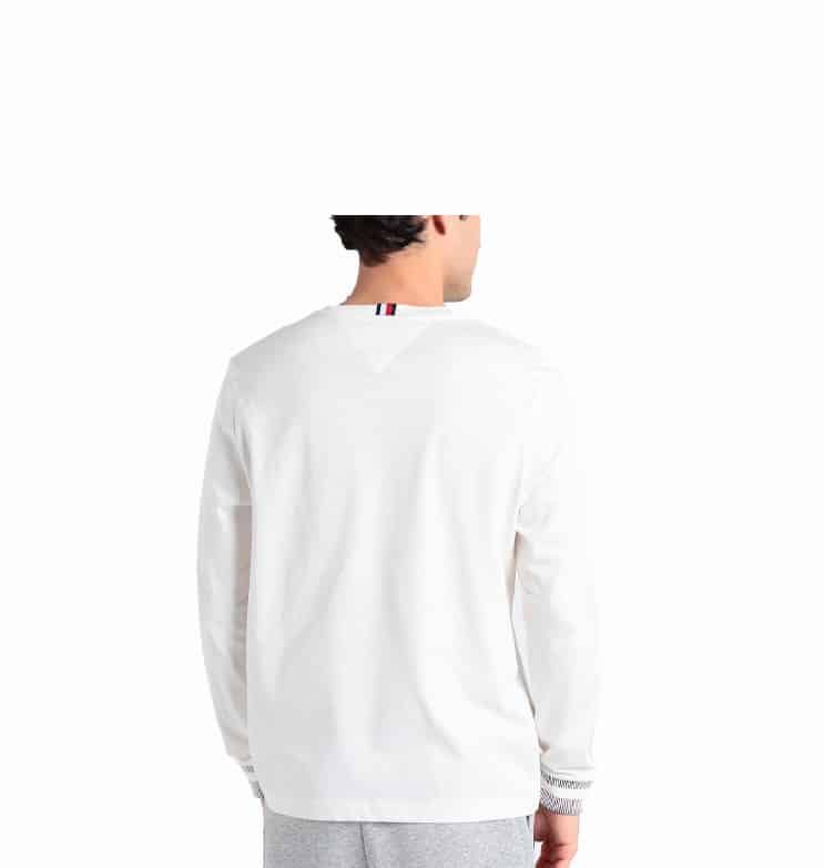 Vyr. marškinėliai, baltos spalvos, ilgomis rankovėmis, prekės ženklo logotipas, apvali kaklo iškirptė.