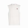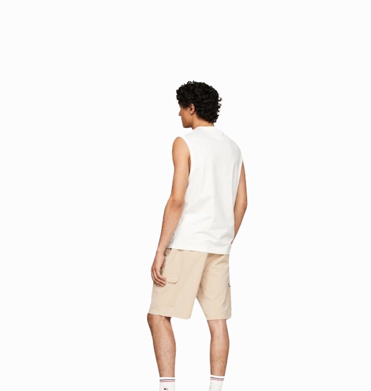 Vyr. marškinėliai, baltos spalvos, apvali kaklo iškirptė, tiesus kirpimas, logotipo detalė, be rankovių.