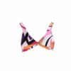 Mot. maudymosi liemenėlė, rožinės/ oranžinės spalvos, geometrinis raštas, plačios petnešėlės, be užsegimo.