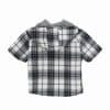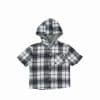 Vaik. marškinėliai, pilkos spalvos, trumpomis rankovėmis, languoto rašto, su gobtuvu, užsegimas sagomis, krūtinės kišenė.