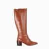 Mot. ilgaauliai batai, rudos spalvos, suapvali batų nosis, blokinis kulnas, užsegimas užtrauktuku, be pašiltinimo.
